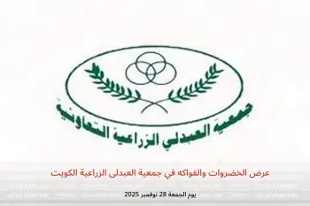 جمعية العبدلى الزراعية الكويت تعلن عن تخفيضات جديدة بعنوان « عرض الخضروات والفواكه » المتوفرة حتي يوم 28 نوفمبر 2025, عروض جديدة وأسعار فقط في الكويت.