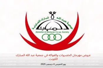 جمعية عبد الله المبارك الكويت تعلن عن تخفيضات جديدة بعنوان « عروض مهرجان الخضروات والفواكه » المتوفرة حتي يوم 4 ديسمبر 2025, عروض جديدة وأسعار فقط في الكويت.