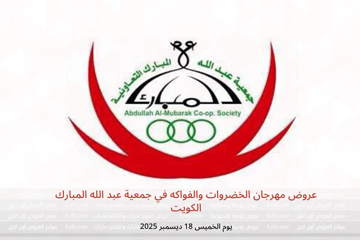 صور وأسعار عروض مهرجان الخضروات والفواكه في جمعية عبد الله المبارك الكويت المعروضة هنا لأغراض توضيحية فقط ومتاحة من الخميس, 18 ديسمبر 2025 حتي الخميس, 18 ديسمبر 2025 ،من i L O F O . C O M.