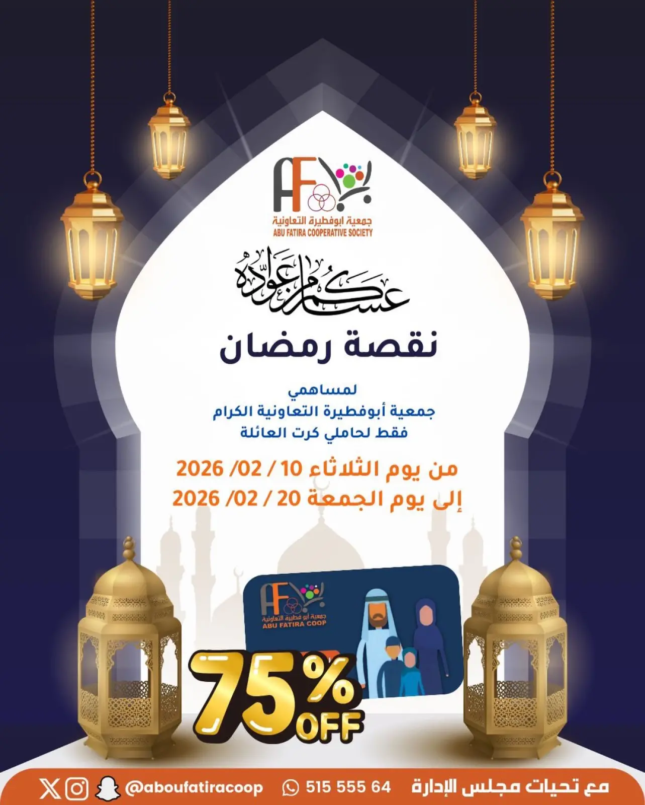 صفحة 1 ضمن عروض رمضان مبارك لحاملى كارت العائلة في جمعية أبو فطيرة الكويت