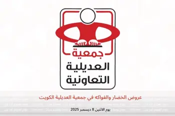 جمعية العديلية الكويت تعلن عن تخفيضات جديدة بعنوان « عروض الخضار والفواكه » المتوفرة حتي يوم 8 ديسمبر 2025, عروض جديدة وأسعار فقط في الكويت.