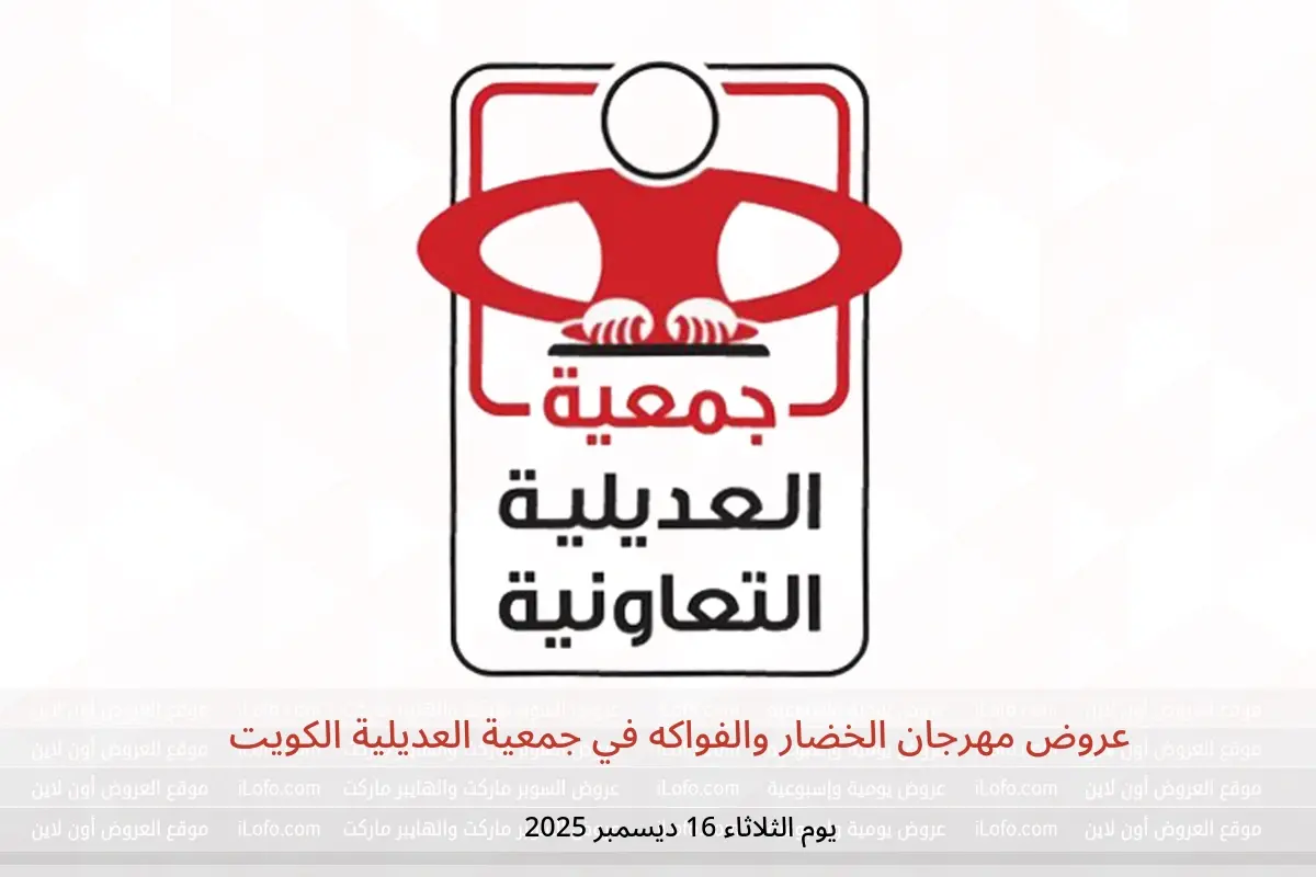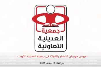 جمعية العديلية الكويت تعلن عن تخفيضات جديدة بعنوان « عروض مهرجان الخضار والفواكه » المتوفرة حتي يوم 16 ديسمبر 2025, عروض جديدة وأسعار فقط في الكويت.
