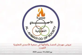 جمعية الأحمدى التعاونية الكويت تعلن عن تخفيضات جديدة بعنوان « عروض مهرجان الخضار والفاكهة » المتوفرة حتي يوم 16 ديسمبر 2025, عروض جديدة وأسعار فقط في الكويت.