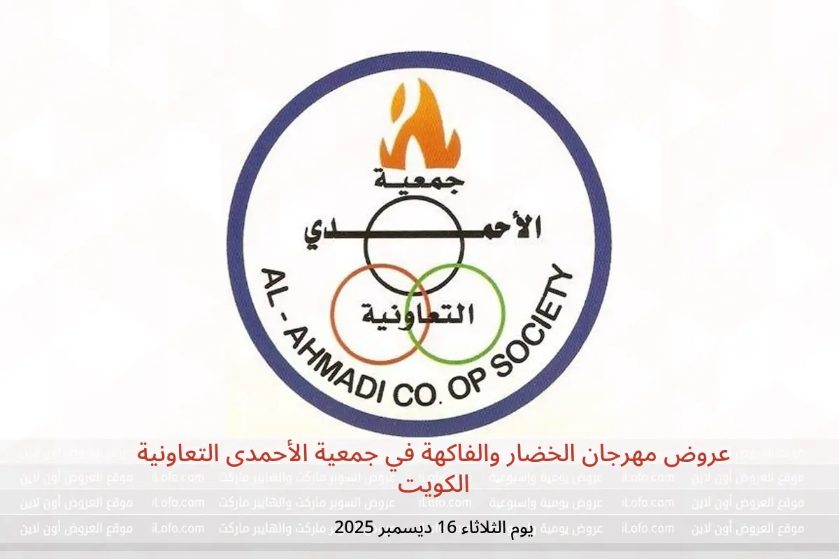 صور وأسعار عروض مهرجان الخضار والفاكهة في جمعية الأحمدى التعاونية الكويت المعروضة هنا لأغراض توضيحية فقط ومتاحة من الثلاثاء, 16 ديسمبر 2025 حتي الثلاثاء, 16 ديسمبر 2025 ،من i L O F O . C O M.