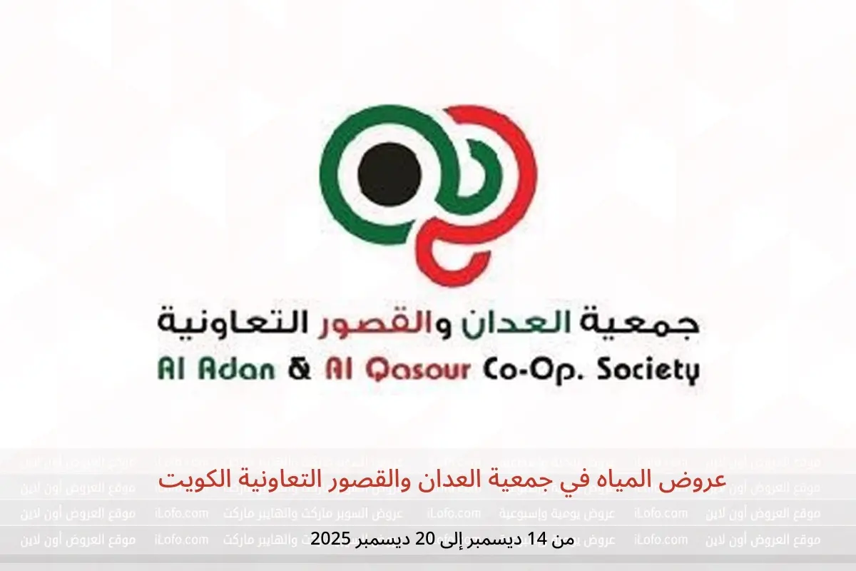 جمعية العدان والقصور التعاونية الكويت تعلن عن تخفيضات جديدة بعنوان « عروض المياه » المتوفرة حتي يوم 20 ديسمبر 2025, عروض جديدة وأسعار فقط في الكويت.