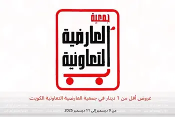 جمعية العارضية التعاونية الكويت تعلن عن تخفيضات جديدة بعنوان « عروض أقل من 1 دينار » المتوفرة حتي يوم 11 ديسمبر 2025, عروض جديدة وأسعار فقط في الكويت.
