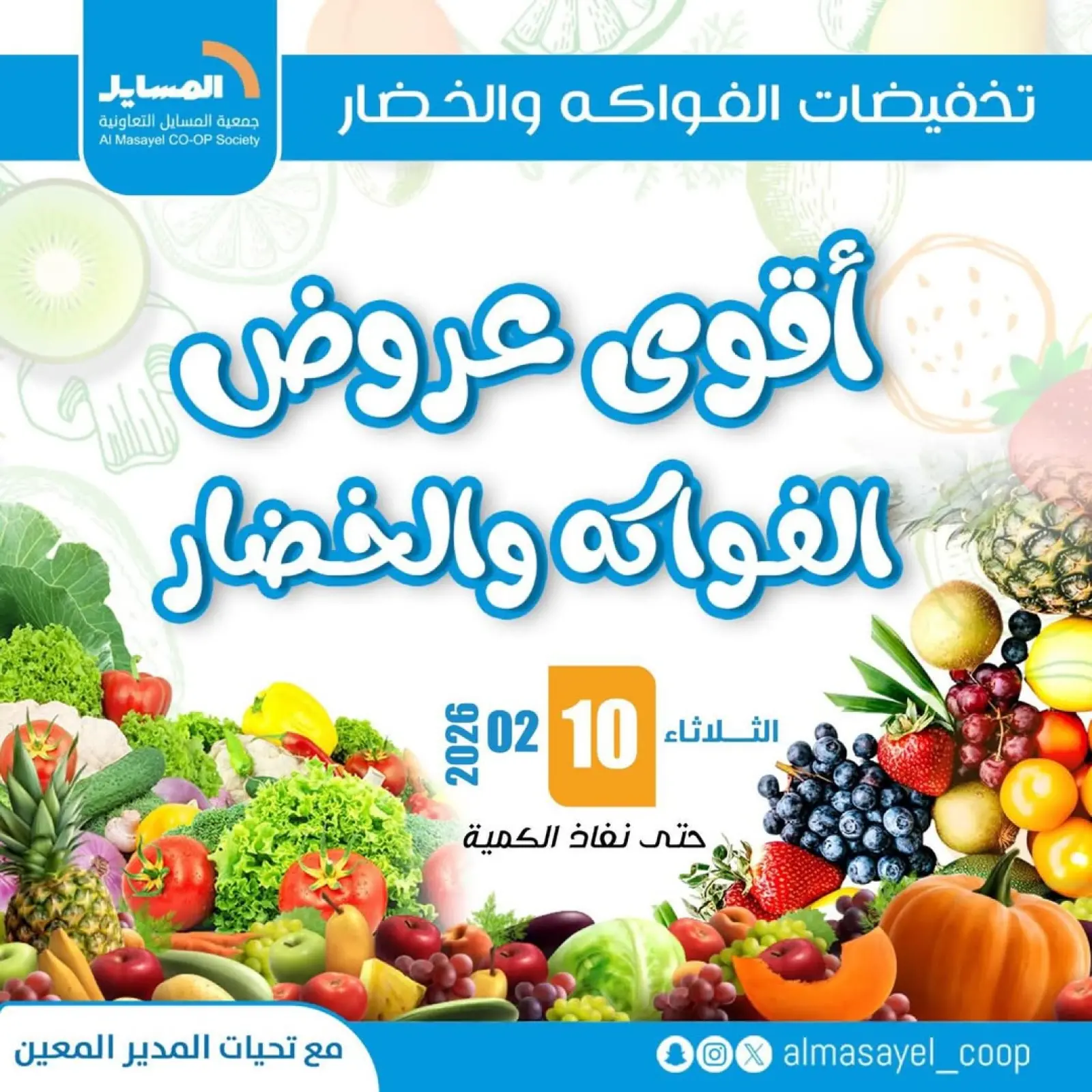 اكتشف أحدث عروض جمعية المسايل في الكويت اليوم وتصفح كاتالوج عروض الخضار والفواكه واستفد من أفضل الأسعار حتى 10 فبراير 2026.