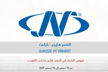 النصر هايبر ماركت الكويت تعلن عن تخفيضات جديدة بعنوان « عروض الشتاء » المتوفرة حتي يوم 16 ديسمبر 2025, عروض جديدة وأسعار فقط في الكويت.