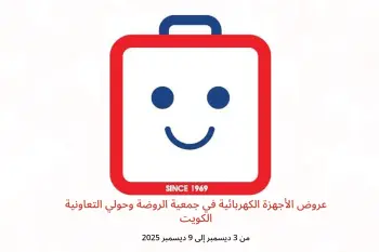 جمعية الروضة وحولي التعاونية الكويت تعلن عن تخفيضات جديدة بعنوان « عروض الأجهزة الكهربائية » المتوفرة حتي يوم 9 ديسمبر 2025, عروض جديدة وأسعار فقط في الكويت.