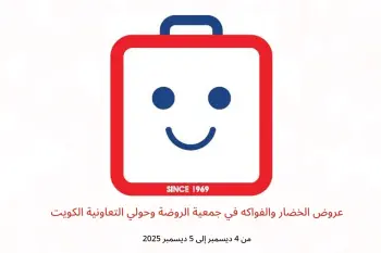 جمعية الروضة وحولي التعاونية الكويت تعلن عن تخفيضات جديدة بعنوان « عروض الخضار والفواكه » المتوفرة حتي يوم 5 ديسمبر 2025, عروض جديدة وأسعار فقط في الكويت.