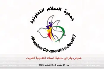 جمعية السلام التعاونية الكويت تعلن عن تخفيضات جديدة بعنوان « عروض وفر » المتوفرة حتي يوم 28 نوفمبر 2025, عروض جديدة وأسعار فقط في الكويت.
