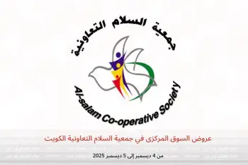 جمعية السلام التعاونية الكويت تعلن عن تخفيضات جديدة بعنوان « عروض السوق المركزى » المتوفرة حتي يوم 5 ديسمبر 2025, عروض جديدة وأسعار فقط في الكويت.