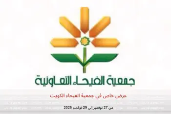 جمعية الفيحاء الكويت تعلن عن تخفيضات جديدة بعنوان « عرض خاص » المتوفرة حتي يوم 29 نوفمبر 2025, عروض جديدة وأسعار فقط في الكويت.