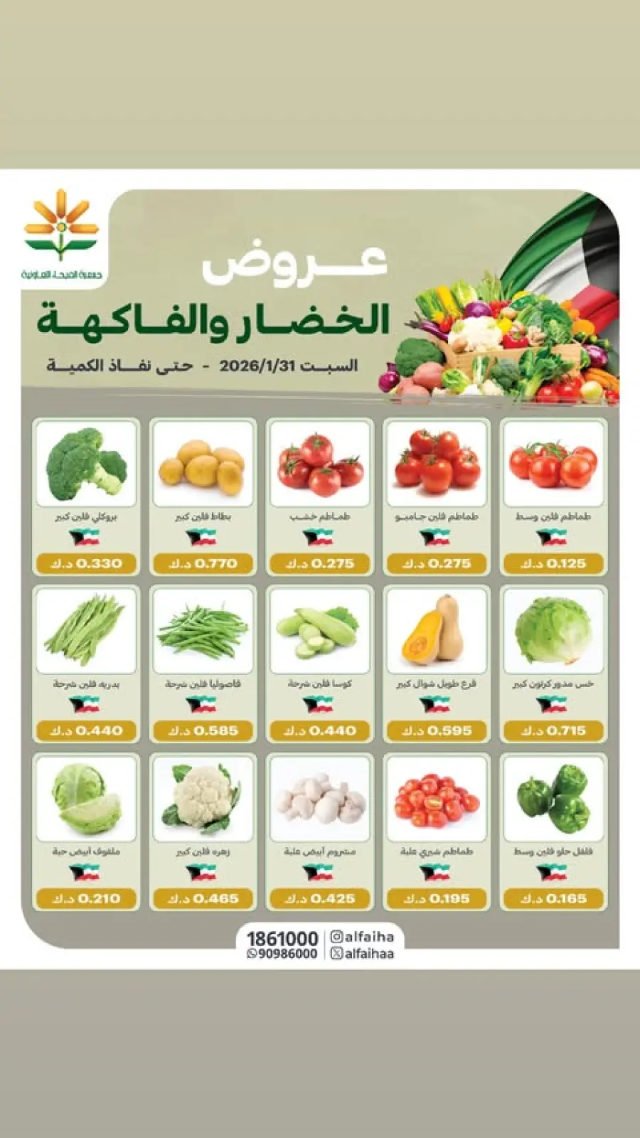 عروض جمعية الفيحاء الكويت السبت 31 يناير 2026 عروض الخضار والفاكهة