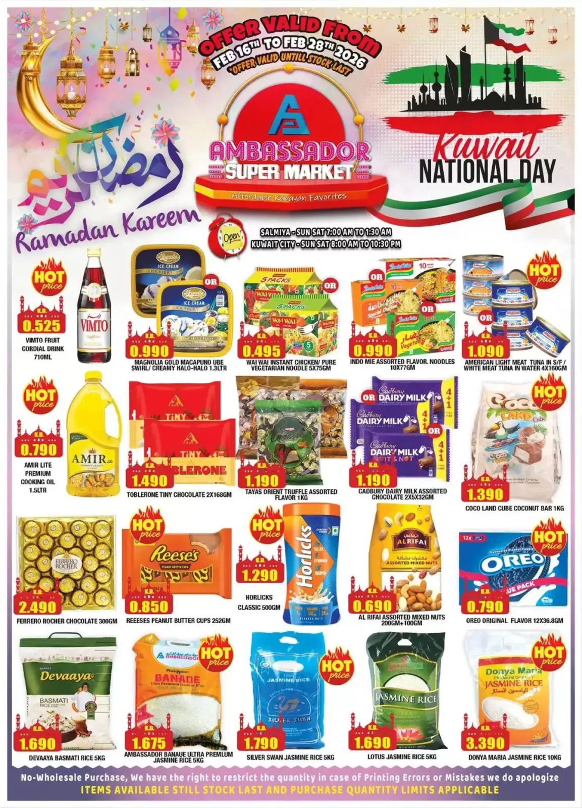 اكتشف أحدث عروض سوق امباسادور المركزي في الكويت اليوم وتصفح كاتالوج عروض رمضان واستفد من أفضل الأسعار حتى 28 فبراير 2026.