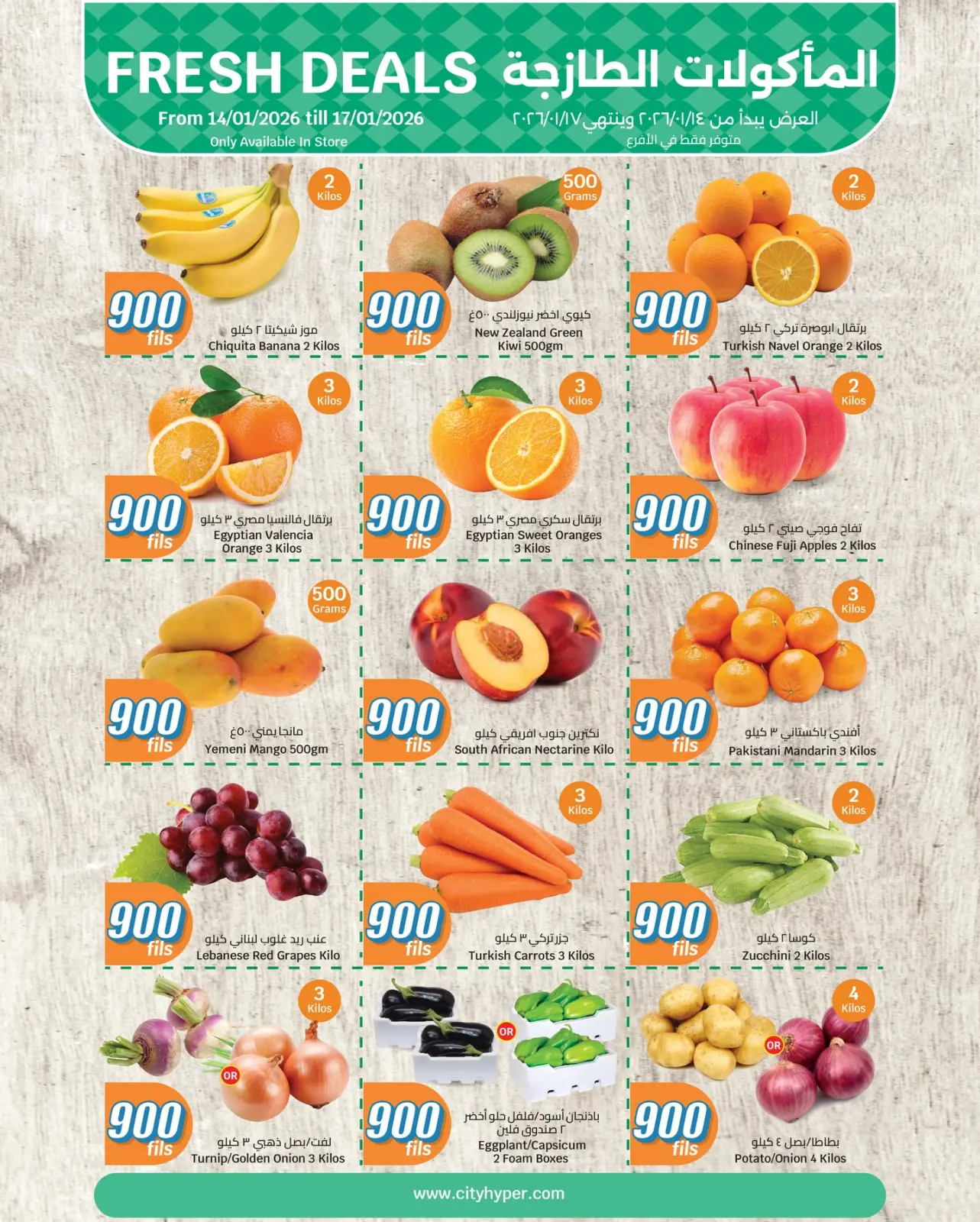 عروض سيتى هايبر الكويت من 14 حتى 17 يناير 2026 عروض المأكولات الطازجة