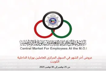 السوق المركزى للعاملين بوزارة الداخلية الكويت تعلن عن تخفيضات جديدة بعنوان « عروض أخر الشهر » المتوفرة حتي يوم 30 نوفمبر 2025, عروض جديدة وأسعار فقط في الكويت.