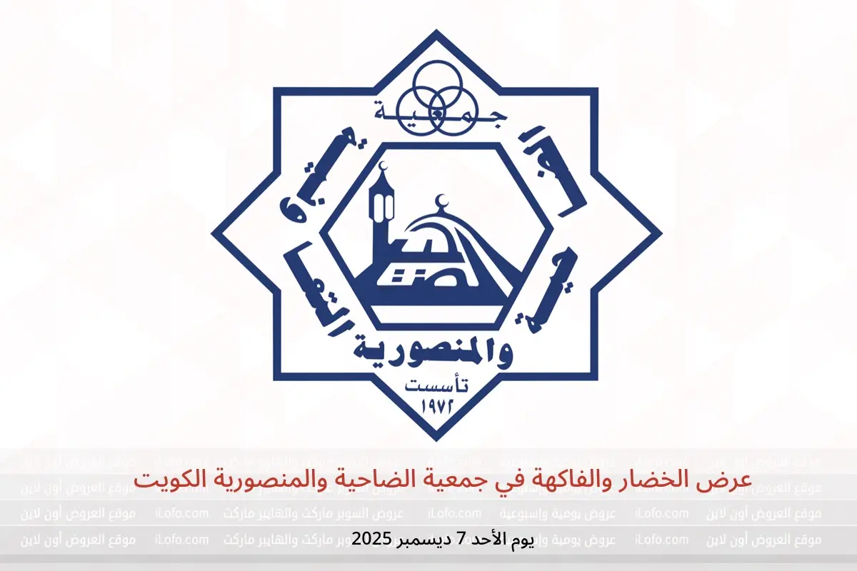 جمعية الضاحية والمنصورية الكويت تعلن عن تخفيضات جديدة بعنوان « عرض الخضار والفاكهة » المتوفرة حتي يوم 7 ديسمبر 2025, عروض جديدة وأسعار فقط في الكويت.