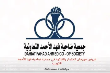 جمعية ضاحية فهد الأحمد الكويت تعلن عن تخفيضات جديدة بعنوان « عروض مهرجان الخضار والفاكهة » المتوفرة حتي يوم 9 ديسمبر 2025, عروض جديدة وأسعار فقط في الكويت.