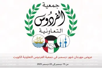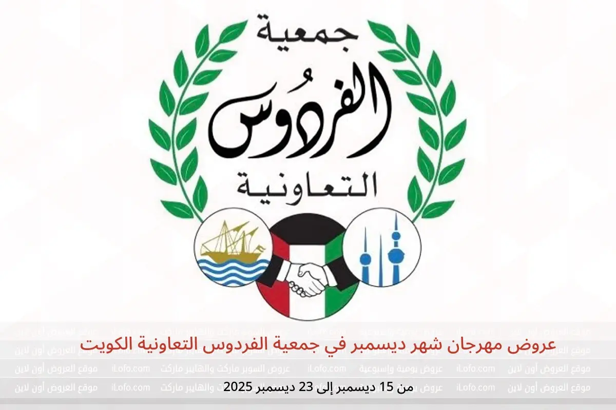 جمعية الفردوس التعاونية الكويت تعلن عن تخفيضات جديدة بعنوان « عروض مهرجان شهر ديسمبر » المتوفرة حتي يوم 23 ديسمبر 2025, عروض جديدة وأسعار فقط في الكويت.