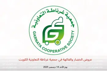 جمعية غرناطة التعاونية الكويت تعلن عن تخفيضات جديدة بعنوان « عروض الخضار والفاكهة » المتوفرة حتي يوم 14 ديسمبر 2025, عروض جديدة وأسعار فقط في الكويت.