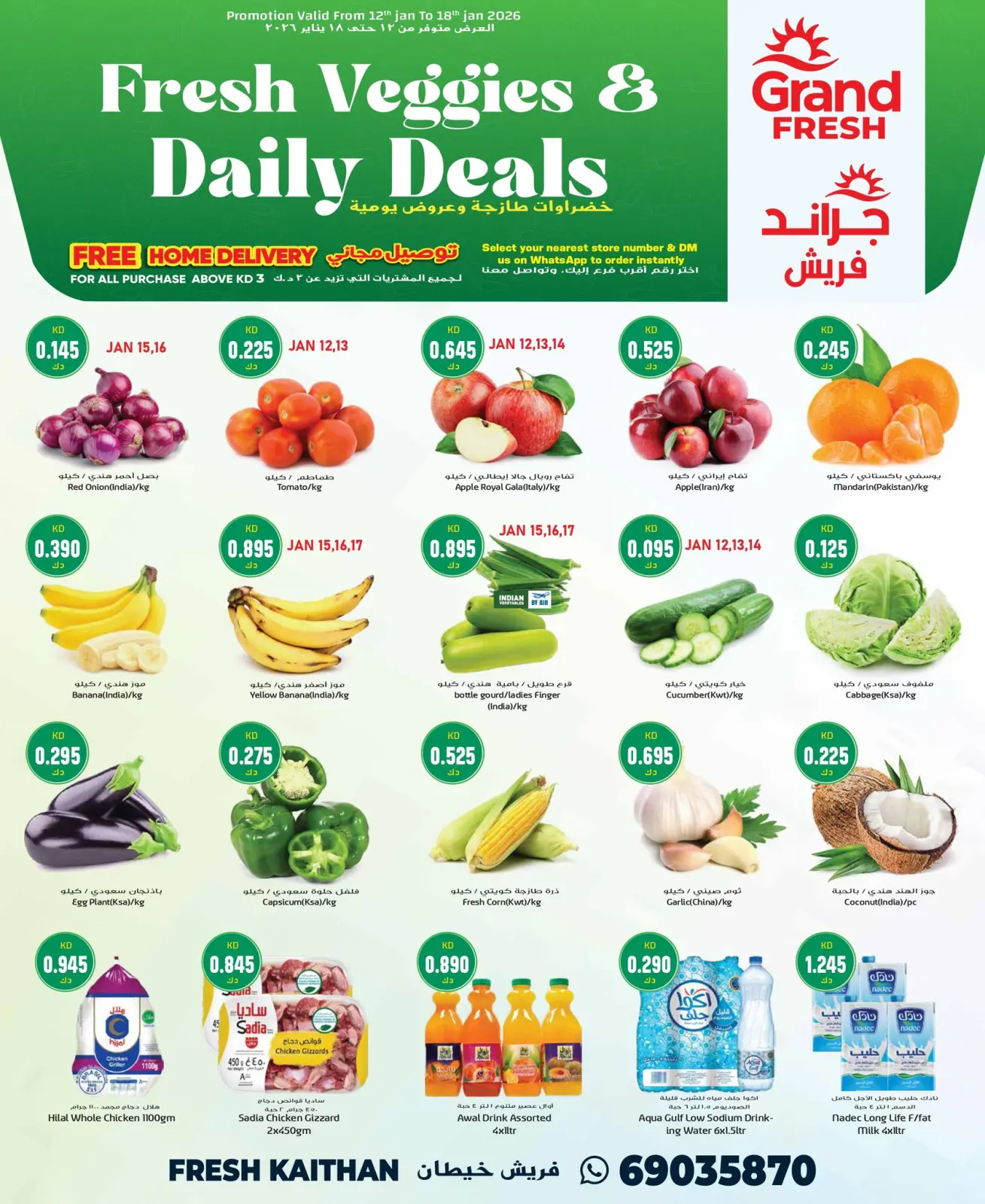 اكتشف أحدث عروض جراند فريش في الكويت اليوم بفروع خيطان وتصفح كاتالوج خضروات طازجة وعروض يومية واستفد من أفضل الأسعار حتى 18 يناير 2026.