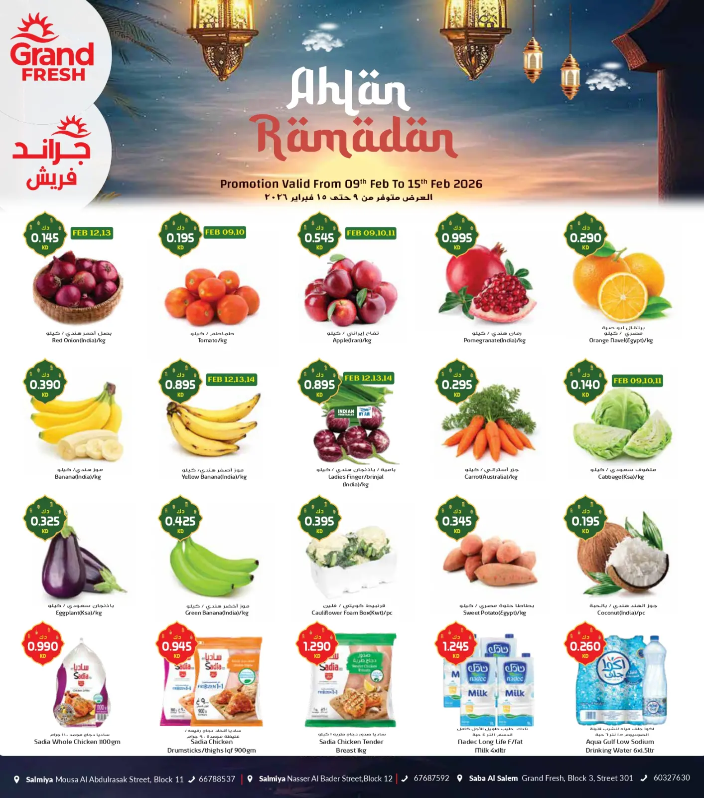 اكتشف أحدث عروض جراند فريش في الكويت اليوم بفروع السالمية و صباح السالم وتصفح كاتالوج عروض اهلا رمضان واستفد من أفضل الأسعار حتى 15 فبراير 2026.