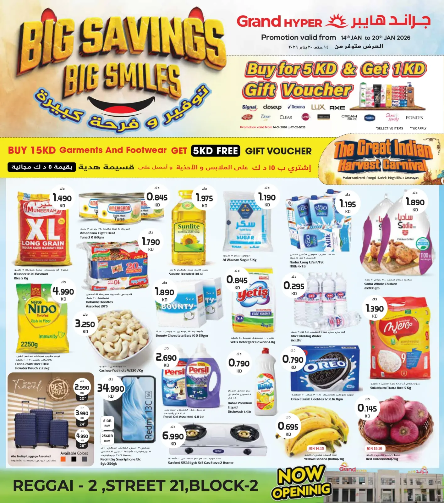 اكتشف أحدث عروض جراند هايبر ماركت في الكويت اليوم وتصفح كاتالوج عروض التوفير الكبير - فرع ريجاي واستفد من أفضل الأسعار حتى 20 يناير 2026.