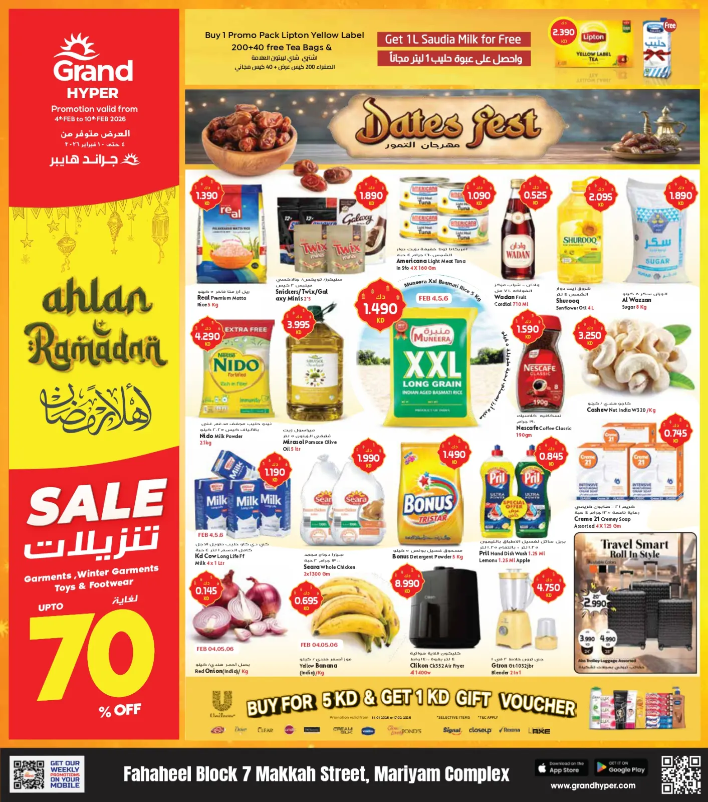 اكتشف أحدث عروض جراند هايبر ماركت في الكويت اليوم بفروع الفحيحيل وتصفح كاتالوج عروض أهلا رمضان واستفد من أفضل الأسعار حتى 10 فبراير 2026.