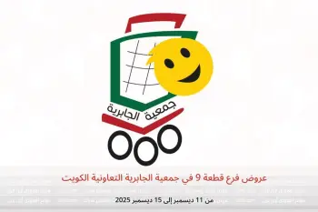 جمعية الجابرية التعاونية الكويت تعلن عن تخفيضات جديدة بعنوان « عروض فرع قطعة 9 » المتوفرة حتي يوم 15 ديسمبر 2025, عروض جديدة وأسعار فقط في الكويت.
