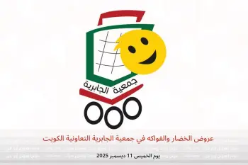 جمعية الجابرية التعاونية الكويت تعلن عن تخفيضات جديدة بعنوان « عروض الخضار والفواكه » المتوفرة حتي يوم 11 ديسمبر 2025, عروض جديدة وأسعار فقط في الكويت.