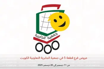 جمعية الجابرية التعاونية الكويت تعلن عن تخفيضات جديدة بعنوان « عروض فرع قطعة 5 » المتوفرة حتي يوم 20 ديسمبر 2025, عروض جديدة وأسعار فقط في الكويت.