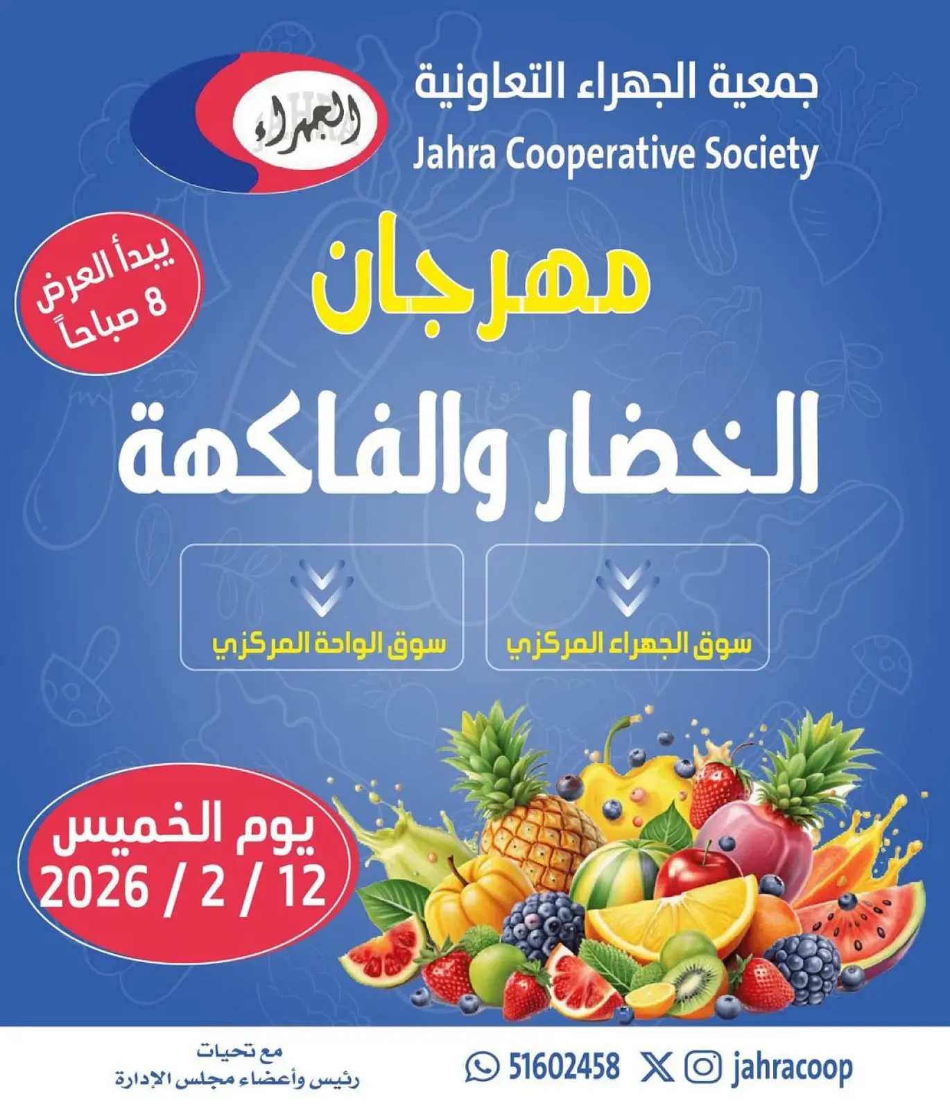 عروض جمعية الجهراء الكويت الخميس 12 فبراير 2026 عروض مهرجان الخضار والفاكهة