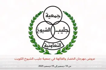 جمعية جليب الشيوخ الكويت تعلن عن تخفيضات جديدة بعنوان « عروض مهرجان الخضار والفاكهة » المتوفرة حتي يوم 19 ديسمبر 2025, عروض جديدة وأسعار فقط في الكويت.