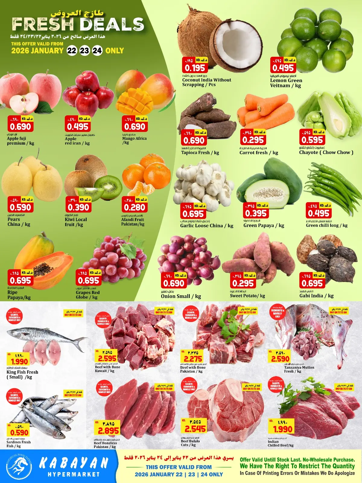 تنويه: صور وأسعار عروض طازجة في كبيان هايبر ماركت الكويت المعروضة في هذا الكاتالوج لأغراض توضيحية فقط، وتخضع للتوفر في الفروع خلال فترة العرض.