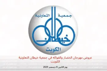 جمعية خيطان التعاونية الكويت تعلن عن تخفيضات جديدة بعنوان « عروض مهرجان الخضار والفواكه » المتوفرة حتي يوم 8 ديسمبر 2025, عروض جديدة وأسعار فقط في الكويت.