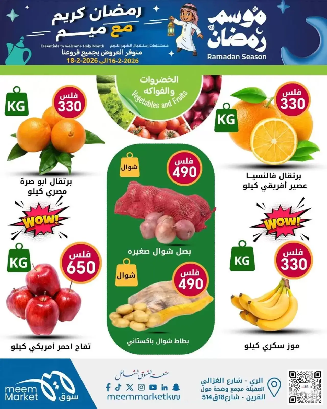 عروض سوق ميم الكويت من 16 حتى 18 فبراير 2026 عروض الخضار والفاكهة