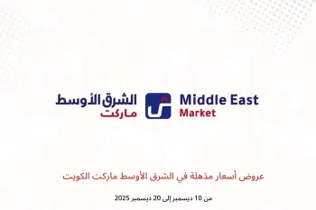الشرق الأوسط ماركت الكويت تعلن عن تخفيضات جديدة بعنوان « عروض أسعار مذهلة » المتوفرة حتي يوم 20 ديسمبر 2025, عروض جديدة وأسعار فقط في الكويت.
