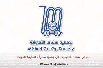 جمعية مشرف التعاونية الكويت تعلن عن تخفيضات جديدة بعنوان « عروض خدمات السيارات » المتوفرة حتي يوم 30 نوفمبر 2025, عروض جديدة وأسعار فقط في الكويت.