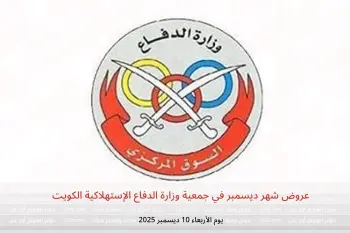 جمعية وزارة الدفاع الإستهلاكية الكويت تعلن عن تخفيضات جديدة بعنوان « عروض شهر ديسمبر » المتوفرة حتي يوم 10 ديسمبر 2025, عروض جديدة وأسعار فقط في الكويت.