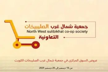 جمعية شمال غرب الصليبخات الكويت تعلن عن تخفيضات جديدة بعنوان « عروض السوق المركزى » المتوفرة حتي يوم 25 ديسمبر 2025, عروض جديدة وأسعار فقط في الكويت.