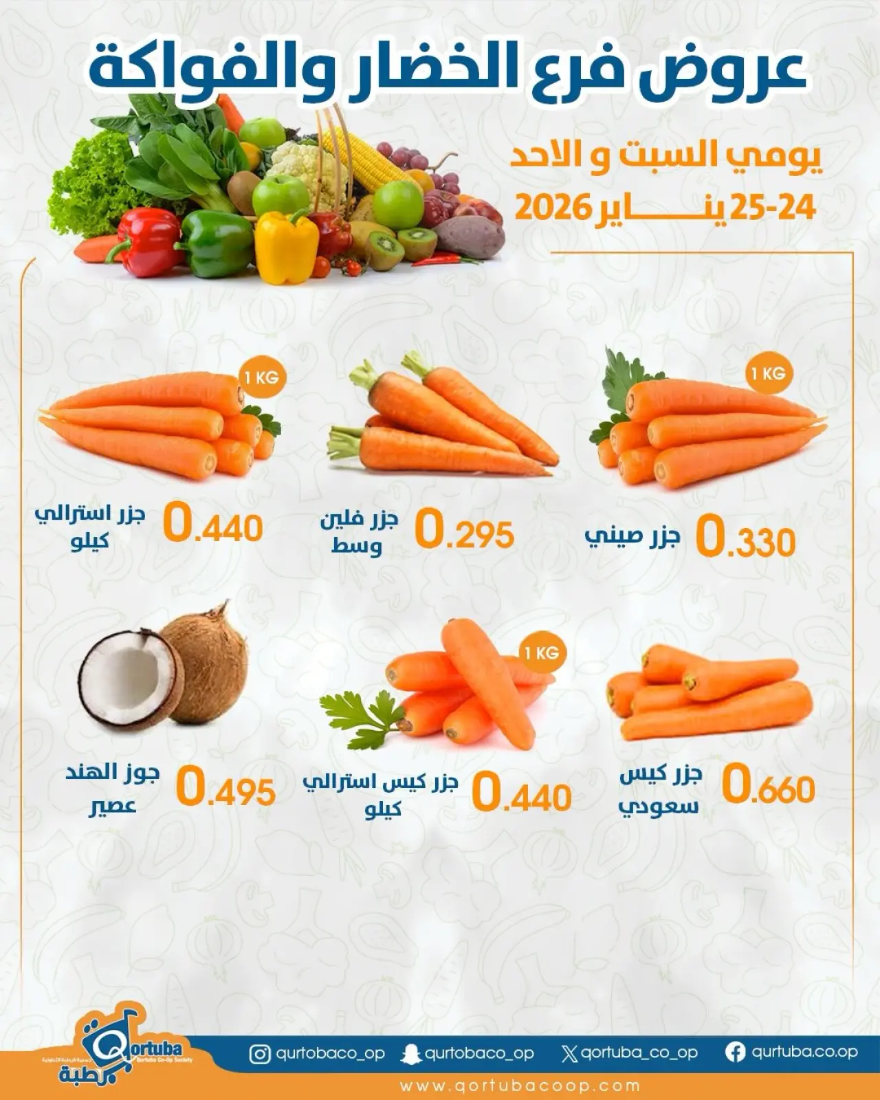 اكتشف أحدث عروض جمعية قرطبة في الكويت اليوم وتصفح كاتالوج عروض الخضار والفواكه واستفد من أفضل الأسعار حتى 25 يناير 2026.