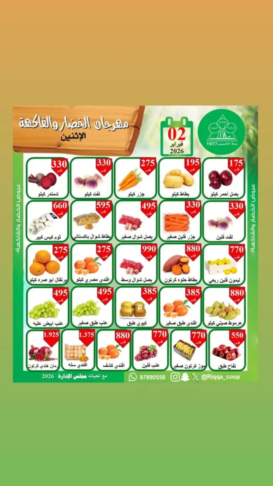 عروض جمعية الرقة التعاونية الكويت الاثنين 2 فبراير 2026 عروض مهرجان الخضار والفاكهة