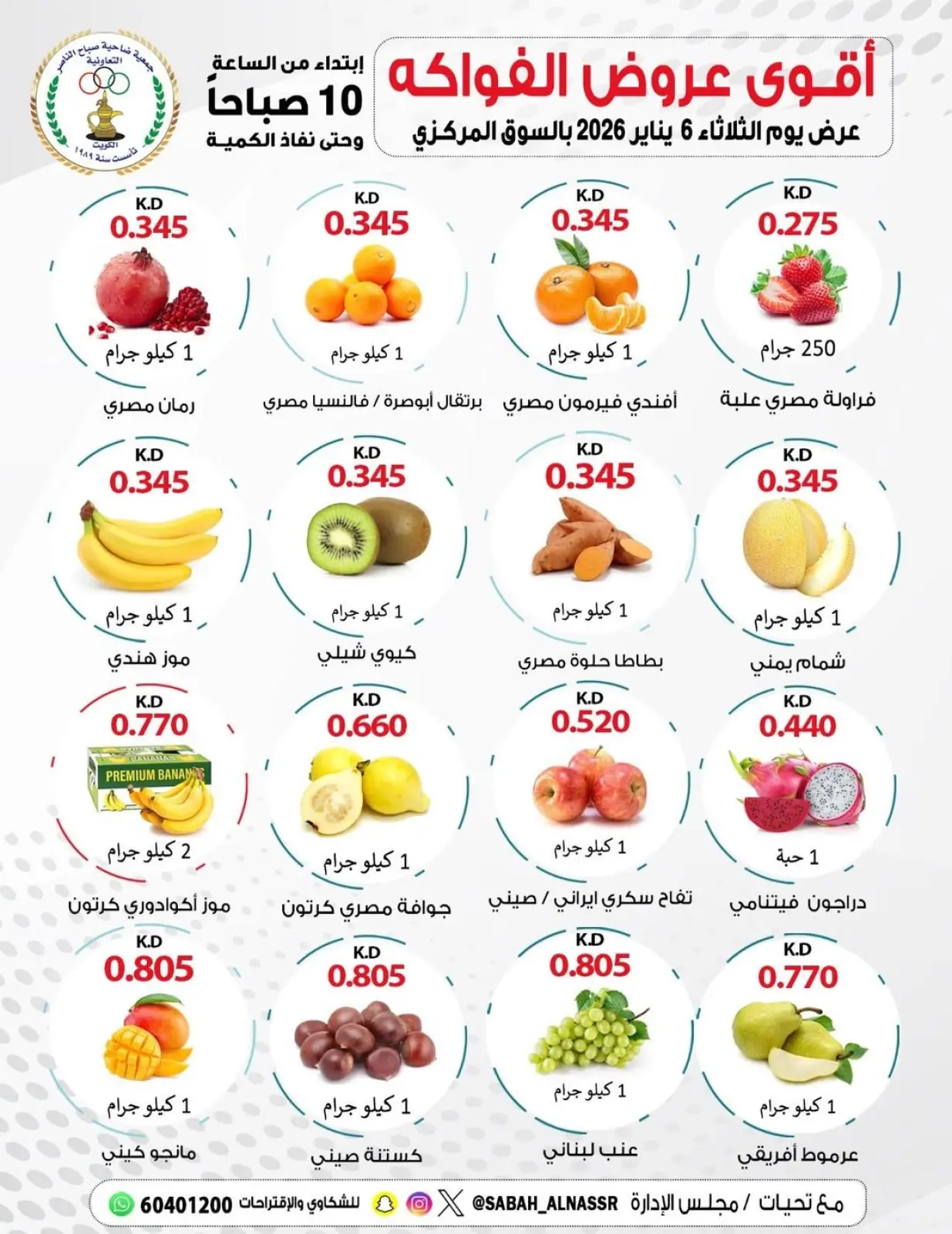 عروض جمعية صباح الناصر الكويت الثلاثاء 6 يناير 2026 عروض الخضار والفواكه
