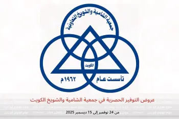 جمعية الشامية والشويخ الكويت تعلن عن تخفيضات جديدة بعنوان « عروض التوفير الحصرية » المتوفرة حتي يوم 15 ديسمبر 2025, عروض جديدة وأسعار فقط في الكويت.