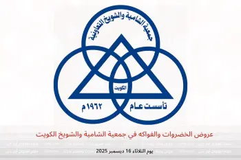 جمعية الشامية والشويخ الكويت تعلن عن تخفيضات جديدة بعنوان « عروض الخضروات والفواكه » المتوفرة حتي يوم 16 ديسمبر 2025, عروض جديدة وأسعار فقط في الكويت.