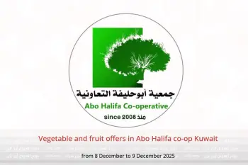 Abo Halifa co-op Kuwait announces new discounts titled « Vegetable and fruit offers » available until 9 December 2025, new offers and prices only in Kuwait.