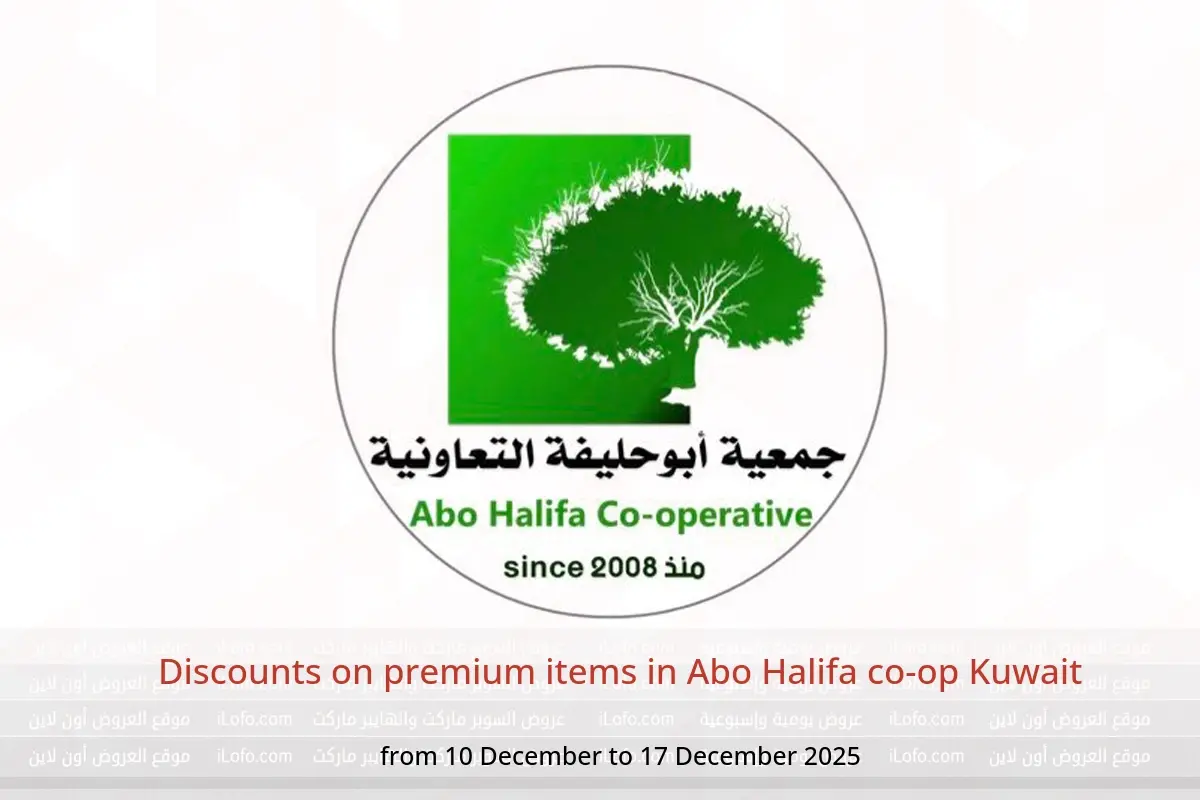 Abo Halifa co-op Kuwait announces new discounts titled « Discounts on premium items » available until 17 December 2025, new offers and prices only in Kuwait.