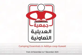 Adiliya coop Kuwait announces new discounts titled « Camping Essentials » available until 7 December 2025, new offers and prices only in Kuwait.