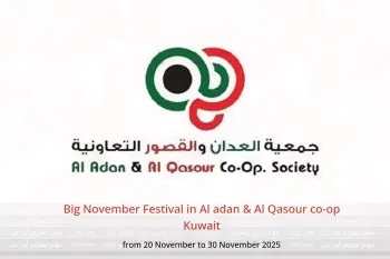 Al adan & Al Qasour co-op Kuwait announces new discounts titled « Big November Festival » available until 30 November 2025, new offers and prices only in Kuwait.